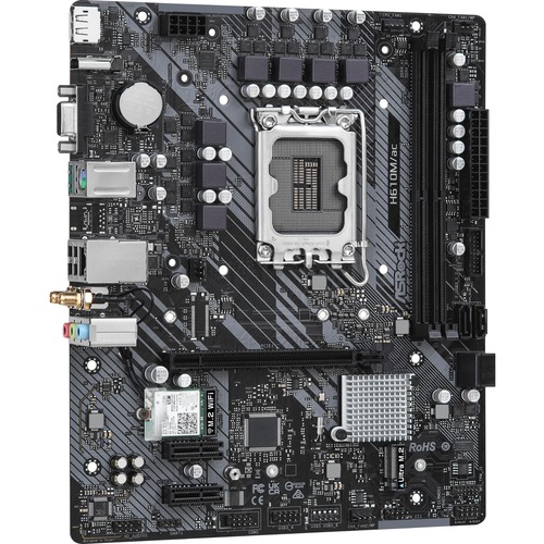 ASRock H610M/ac Desktop Motherboard - Intel H610 Chipset - Socket LGA-1700 - Micro ATX - 64 GB DDR4 SDRAM Maximum RAM - DDR4-3200/PC4-25600 - DIMM - 2 x Memory Slots - Gigabit Ethernet - IEEE 802.11a/b/g/n/ac - HDMI - DisplayPort - 3 x SATA Interfaces