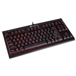 The CORSAIR K63 features a tenkeyless design and CHERRY MX Red mechanical keyswitches for ultimate performance. Brilliant per-key, red LED backlighting enables dynamic and virtually unlimited lighting adjustability.