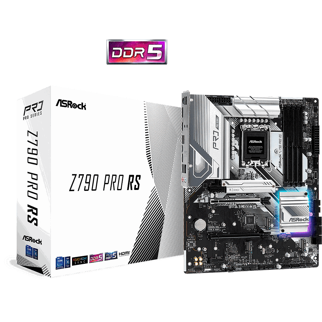 Z790 Pro RS, 4 DIMMs, DDR5, 2 (x16, x4) , Realtek RTL8125 2.5G, Realtek ALC897, Nahimic Audio, 4 (1*RGB 12V + 3*Addressable 5V)